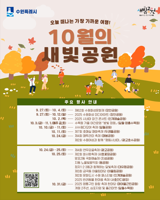 10월, 수원시 공원 곳곳에서 다양한 축제와 프로그램을 즐기세요!