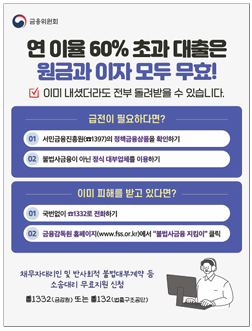 만약 불법 대부업에 이미 피해를 입었다면 금융감독원(☎1332) 또는 보증·법률 지원기관(☎132)에 연락해 상담과 법률지원을 받을 수 있다.