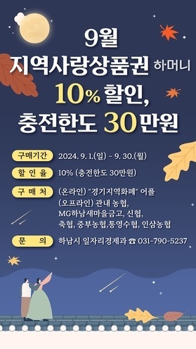 한국다문화뉴스 = 심민정 기자 | 하남시가 9월 추석 명절을 맞이해 지역사랑상품권인 하머니 인센티브를 확대한다고 밝혔다.
