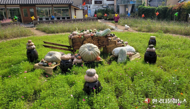 올해 봄부터 수선화, 버들마편초 등 계절초화를 심어 조성한 북지터 일원에 포토존을 마련됐다. 호박을 활용한 다양한 조형물과 장식으로 가을 분위기를 만들었다.