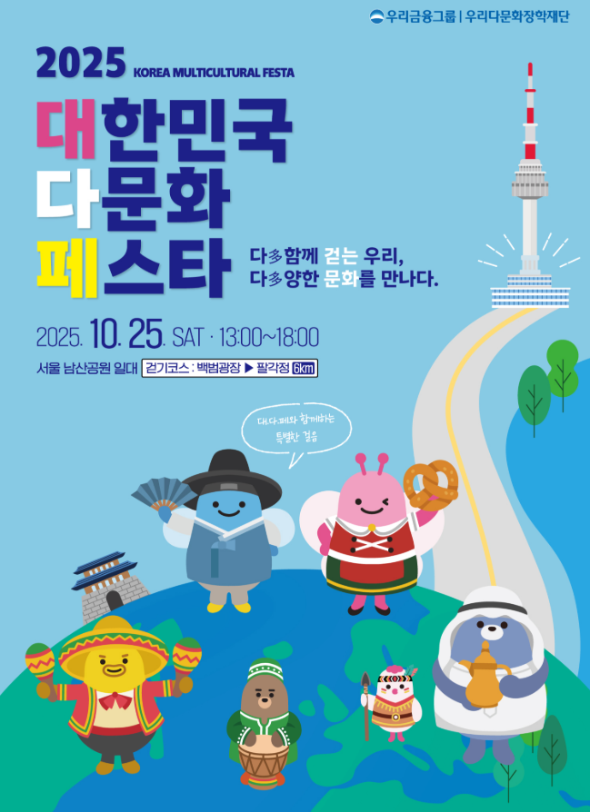 우리금융그룹 산하 우리다문화장학재단은 오는 25일 오후 1시부터 서울 남산 일대에서 ‘2025 대한민국 다문화 페스타’를 개최한다고 밝혔다.