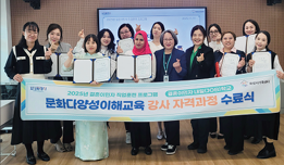 특히 교육 과정 후반에는 지난해 수료생이 직접 참여해 실제 강의 활동 경험 강사로서의 성장 과정 등을 공유하는 자리를 마련해 수강생들에게 실질적인 동기부여와 비전을 제시했다. 수료생 중 한 명은 “문화다양성이해교육을 통해 이전에 느껴보지 못한 보람을 얻었다”며 “부족하지만 앞으로도 좋은 다문화 강사가 되기 위해 노력하겠다”고 소감을 전했다.