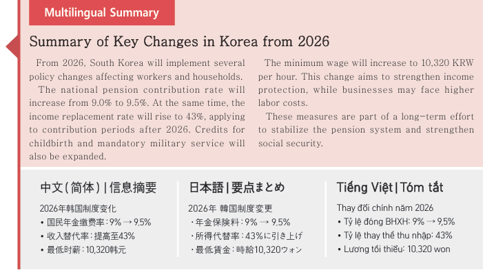 이는 산업별·직종별 특성을 고려해 일부 유연한 운용 여지를 남긴 것으로 해석된다. 이번 임금 기준은 2026년 2 월 1일부터 적용되며, 2026년 1월 31일까지는 기존 기준이 유지된다. 외국인 고용을 계획 중인 기업이나 기관은 적용 시점과 기준을 면밀히 확인할 필요가 있다.