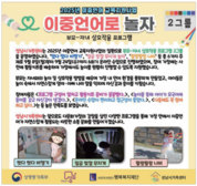 성남시가족센터(센터장 송문영)는 2025년 9월 8일(월)부터 9월 24일(수)까지 매주 월요일과 수요일, ZOOM을 활용한 비대면 방식으로 「이중언어로 놀자」 부모-자녀 상호작용 프로그램 2그룹을 운영했다. 이번 프로그램은 만 3세부터 만 5세 이하 자녀를 둔 결혼이민자 5가정을 대상으로 진행됐다. 이 프…
