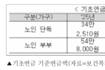 국민연금과 기초연금 급여가 올해 1월부터 2.1% 인상되고, 기준소득월액 상·하한액은 오는 7월부터 상향 조정된다. 보건복지부는 9일 국민연금공단 강남 사옥에서 2026년 제1차 국민연금심의위원회를 열고 국민연금 급여액 인상, 기준소득월액 상·하한액 조정, 기준소득월액 결정 특례 제도 연장 등을 의결했다고 밝혔다. 이번 결정에 따라 국민연금 수급자와 기초연금 수급자는 물가상승률을 반영한 인상된 연금액을 이달부터 지급받게 된다. 국민연금 기본연금액과 부양가족연금액은 전년도 소비자물가상승률 2.1%를 반영해 인상된다. 이에 따라 현재 국민연금을 받고 있는 약 752만 명의 수급자는 1월 지급분부터 2.1% 오른 연금액을 받는다. 위원회는 아울러 2026년 신규 국민연금 수급자의 급여 산정에 적용되는 재평가율을 결정했다. 재평가율은 가입자가 과거에 벌었던 소득을 연금 수급 개시 시점의 현재가치로 환산하는 지수로, 매년 법령에 따라 심의를 거쳐 조정·고시된다. 예를 들어 1988년 재평가율은 8.528로, 당시 소득이 100만 원이었다면 이를 적용해 2025년 현재가치 기준 약 852만 8000원으로 환산해 연금액을 산정하게 된다. 연금보험료와 연금액 산정의 기준이