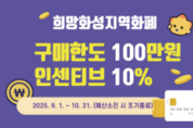 화성특례시(시장 정명근)가 9월과 10월 두 달간 ‘희망화성지역화폐’의 인센티브가 지급되는 개인별 구매 한도를 월 최대 50만 원에서 100만 원까지로 두 배 상향한다고 2일 밝혔다. 인센티브는 구매 금액의 10%를 유지하며, 100만 원을 충전하면 10만 원을 받을 수 있다. 희망화성지역화폐는 오는 11월 30일까지 한 시적으로 기존 가맹점뿐만 아니라 연매출 30억 원 이하 비가맹점(민생회복 소비쿠폰 사용처) 에서도 사용할 수 있다. 이번 확대 발행은 정부의 민생 회복 기조에 발맞춰 지역 경제 활성화와 소비 진작을 유도하기 위한 조치로, 가계 부담 절감으로 위축된 소비 심리 회복과 소상공인 및 자영업자의 매출 확대에 실질적인 보탬이 될 것으로 기대된다. 정명근 화성특례시장은 “이번 지역화폐 확대 발행은 명절을 앞둔 시민들의 생활 안정에 보탬이 되고, 지역경제의 숨통을 틔우는 계기가 될 것”이라며 “앞으로도 실효성 있는 지역화폐 정책으로 소비 촉진과 지역 상권 회복을 이끌겠다”고 말했다.