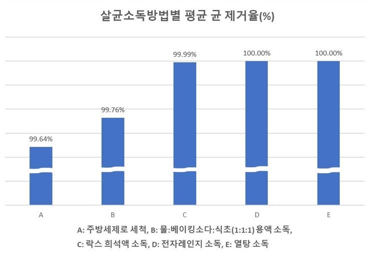주방세제와 물·베이킹소다·식초 혼합은 평균 제거율 99.64~99.76%로 다소 부족했다.