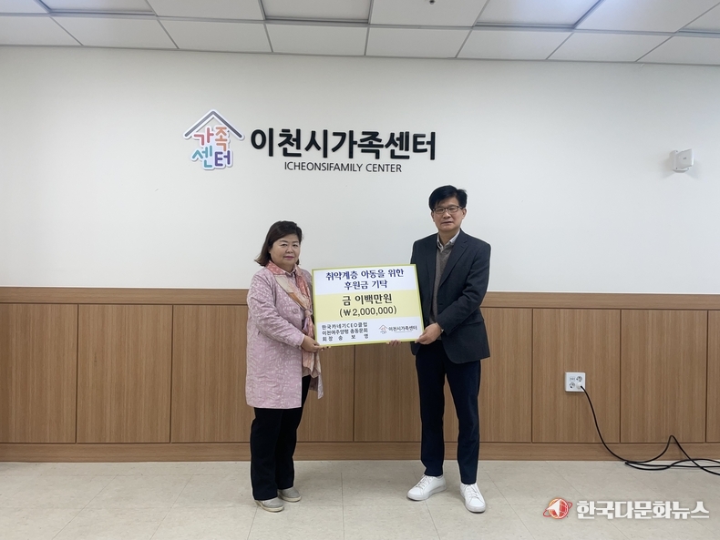 한국다문화뉴스 강성혁 기자 | 이천시가족센터(센터장 박명호)는 지난 28일에 중리동행정복지센터 3층에서 한국카네기CEO클럽 이천여주양평 총동문회(회장 송보영)와 후원금 전달식을 가졌다.