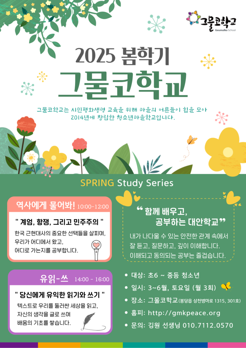 관련 문의는 그물코학교 김원 선생님(010-7112-0570)으로 하면 된다.