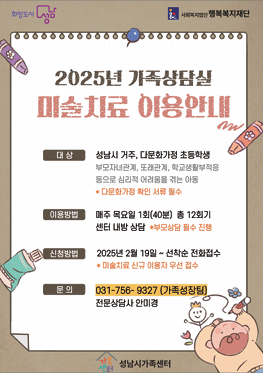문의는 성남시가족 센터 전문상담사 전화 (031-756-9327)로 하면 된다.