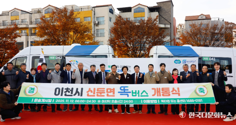 이천시는 11월 12일부터 신둔·마장 지역에 수요응답형 버스 ‘똑버스’를 개통하고, 13일 신둔면 도자예술마을, 14일 마장면사무소에서 개통행사를 개최했다고 밝혔다.