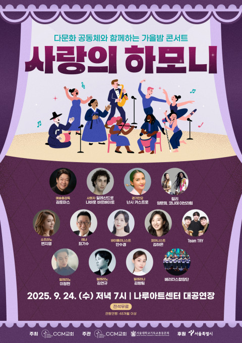 서울특별시 종교계 문화행사 지원사업에 선정된 ‘다문화 공동체와 함께하는 가을밤 콘서트 - 사랑의 하모니’가 오는 9월 24일(수) 오후 7시 서울 광진구 나루아트센터 대공연장에서 열린다.