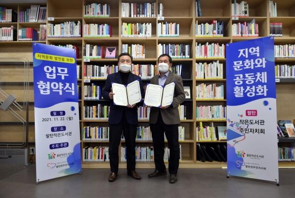 화성시 팔탄작은도서관이 팔탄면주민자치회와 독서문화프로그램 지원을 위한 업무협약을 체결했다.