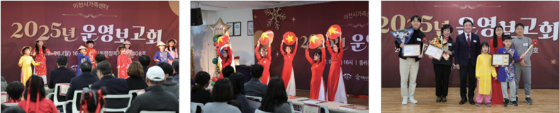 이천시(시장 김경희)는 지난 8일 이천시가족센터에서 2025년 한 해 동안 추진한 가족지원 및 다문화가족 지원 사업의 성과를 공유하기 위해 유관기관 관계자와 시민 등 200여 명이 참석한 가운데 ‘2025년 이천시가족센터 운영보고회’를 개최했다고 밝혔다.