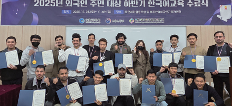 고용노동부와 인천광역시는 외국인 근로자의 고용 안정과 지역사회 정착을 지원하기 위해 추진 중인‘2025년 지역산업맞춤형 일자리사업’의 일환으로 4개월간 한국어 교육과정을 운영했으며, 11월 9일 수강생들을 대상으로 수료식을 개최했다.