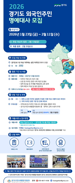 경기도가 오는 2월 10일까지 ‘경기도 외국인주민 대사’ 20명을 모집한다.