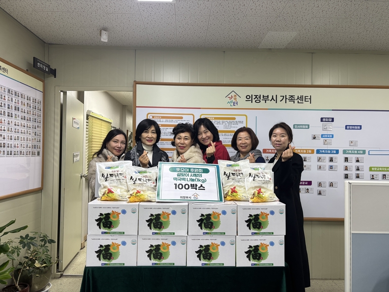 의정부시가족센터는 3일 뜻모아후원회(회장 한진숙)로부터 설 명절을 맞아 어려운 이웃들을 위한 떡국떡 100박스를 전달 했다고 밝혔다.