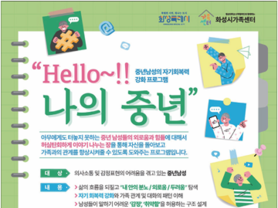 화성시가족센터(센터장 박미경)는 오는 11월 15일(토)과 11월 28일(금) 양일에 걸쳐, 의사 소통에 어려움을 겪고 있는 화성시 내 거주 중년남성 8명을 대상으로 ‘중년남성의 자기회복력강화 프로그램2’를 운영한다고 밝혔다. 이번 집단상담은 아무에게도 터놓지 못하는 중년 남성들의 외로움과 힘듦에 대해서 허심탄회하게 이야기 나누는 장을 통해 자신을 돌아보고 가족과의 관계를 향상시켜줄 수 있도록 도와주는 프로그램이다. 프로그램은 총 2회에 걸쳐 진행된다. △11월 15일에는 나를 찾아가는 시간 △11월 28일에는 목공체험(도마만들기)으로 진행예정에 있으며, 현재 참여자 모집 중에 있다고 밝혔다. 박미경 화성시가족센터장은 “이번 사업을 통해 화성시에 거주하는 중년남성들의 의사소통 개선 및 갈등을 완화하고 가족과 직장에서의 관계를 회복하는데 큰 도움이 될 것”이라며, “앞으로도 다양한 위기 가족을 위한 통합 서비스를 지속적으로 확대해 나갈 계획”이라고 말했다. 한편, 화성시가족센터는 ‘온가족보듬사업’의 일환으로 이번 프로그램 외에도 다양한 가족 형태의 안정적인 정착과 가족 기능 회복을 지원하기 위한 상담, 사례관리, 교육·문화 프로그램 등 종합적인 서비스를 제공하