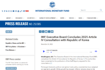 국제통화기금(IMF)이 2025년 한국 경제 성장률을 0.9%로, 2026년에는 1.8%로 전망했다. IMF는 한국의 총수요가 잠재 수준에 미치지 못하는 상황이 이어지고 있으며, 단기적으로는 완화적 통화·재정정책이 경기 회복에 도움이 될 것으로 평가했다. 그러나 잠재성장률을 끌어올리기 위해서는 노동·산업·자본시장 전반의 구조개혁이 필요하다는 점을 거듭 강조했다. 이번 평가는 24일(현지시간) 공개된 '2025년 한국 연례협의(Article IV) 보고서'와 이에 대한 집행이사회 결론을 통해 제시됐다. IMF는 올해 한국 경제의 성장 둔화를 국내 정치 불확실성, 글로벌 교역 갈등, 미국의 대(對)한국 관세 인상 등 외부 충격 요인에서 찾았다. 그러나 물가 수준이 목표치 근처에서 안정되고, 금융 시스템의 전반적 건전성도 유지되고 있다고 보았다. 보고서는 “financial sector remains broadly sound”라고 평가하면서도 프로젝트파이낸싱(PF) 익스포저가 높은 비은행금융기관(NBFI)과 가계부채의 잠재 위험을 주요 리스크로 제시했다. 수출과 외부수지는 중기적으로 개선 가능성이 있는 것으로 전망됐다. 올해 미국 관세 인상과 수입 증가의 영향으로