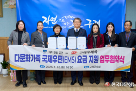 전남 구례군은 지난 26일 구례우체국과 '다문화가족 국제우편(EMS) 요금 지원'을 위한 업무 협약을 체결했다. 이번 협약은 다문화가족의 경제적 부담을 경감하고 고국과의 지속적인 교류를 돕기 위해 마련됐다.특히 전라남도 내 지자체 중에서는 구례군이 처음으로 시행하는 사업이라는 점에서 의미가 깊다. 지원 대상은 신청일 기준 구례군에 주소를 두고 거주하는 다문화가족이며, 올해 총사업비 500만 원 규모 내에서 약 50가구를 지원할 계획이다. 사업비 소진 시까지 선착순으로 마감된다. 지원 가구는 횟수에 상관없이 연간 10만 원 한도 내에서 국제우편(EMS) 서비스를 이용할 수 있다. 이용을 희망하는 다문화가족은 구례우체국을 직접 방문해 서비스를 신청하고 물품을 발송하면 된다. 김순호 구례군수는 "이번 지원사업이 다문화가족들이 고향에 계신 가족들과 따뜻한 정을 나누고, 지역 사회에 안정적으로 정착하는 데 작은 보탬이 되길 바란다"며 "앞으로도 다문화가족이 체감할 수 있는 실질적인 복지 정책을 지속적으로 발굴해 나가겠다"고 전했다. 한편, 구례군은 올해 신설된 국제우편 요금 지원사업 외에도 ▲다문화가족 고국 방문 지원 ▲자조 모임 지원 ▲어울림 한마당 행사 외에도 1