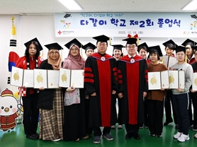 대한적십자사 서울특별시지사(회장 권영규)는 12월 18일(목), 서울 양천구 서부봉사관에서 다문화가정 여성 정착 지원 프로그램 ‘다같이학교’ 제2회 졸업식을 개최했다고 밝혔다. 이날 졸업식에는 권영규 대한적십자사 서울지사 회장, '다같이학교' 명예교장인 진교훈 강서구청장을 비롯해 다같이학교 졸업생과 가족, 적십자봉사원, 후원회 관계자 등 약 100명이 참석해 졸업을 축하했다. 졸업식은 △다같이학교 운영 보고 및 활동 영상 상영 △졸업장 전달 △우수학생 표창 △졸업생 대표 인사 △‘씽씽 하모니(Sing Sing Harmony)’ 합창 공연 순으로 진행됐다. 올해로 2회째를 맞은 이번 졸업식에서는 중국, 베트남, 필리핀, 일본, 러시아, 몽골, 태국, 인도네시아 등 8개국 출신 다문화가정 여성 31명이 졸업의 결실을 맺었다. 졸업생들은 약 7개월간 문화 이해, 공동체 활동, 정서적 지지 프로그램 등에 참여하며 한국 사회 정착을 위한 역량을 키워왔다. 권영규 대한적십자사 서울지사 회장은 기념사를 통해 “다같이학교는 서로 다른 배경을 가진 이웃들이 ‘다 같이’ 성장하며 ‘다 같은’ 지역사회 구성원이 되어가는 과정”이라며, “졸업생 여러분이 앞으로도 지역사회 안에서
